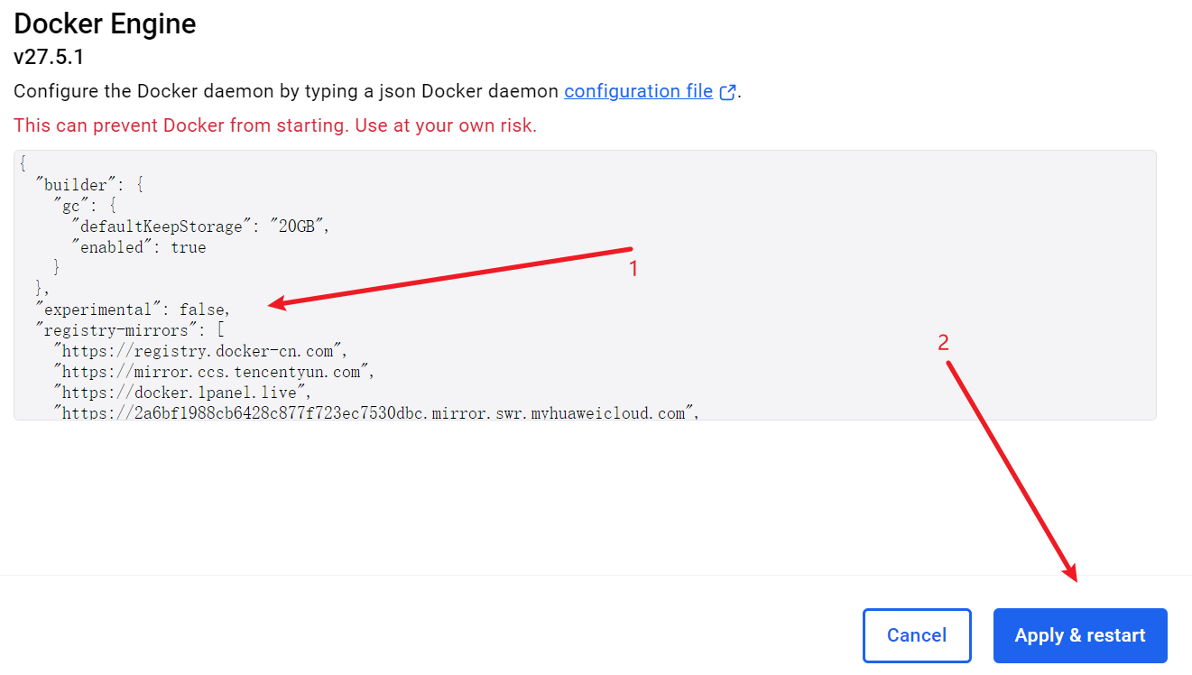 添加以下内容,⚠️如果你daemon.json是空的记得用{}将下面内容括起来